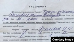 Родные говорят, что во время нахождения в колонии по первому сроку полковника Дехканбаева жестоко пытали. В подтверждение своих слов они предоставили нашей редакции несколько документов и фотографий.